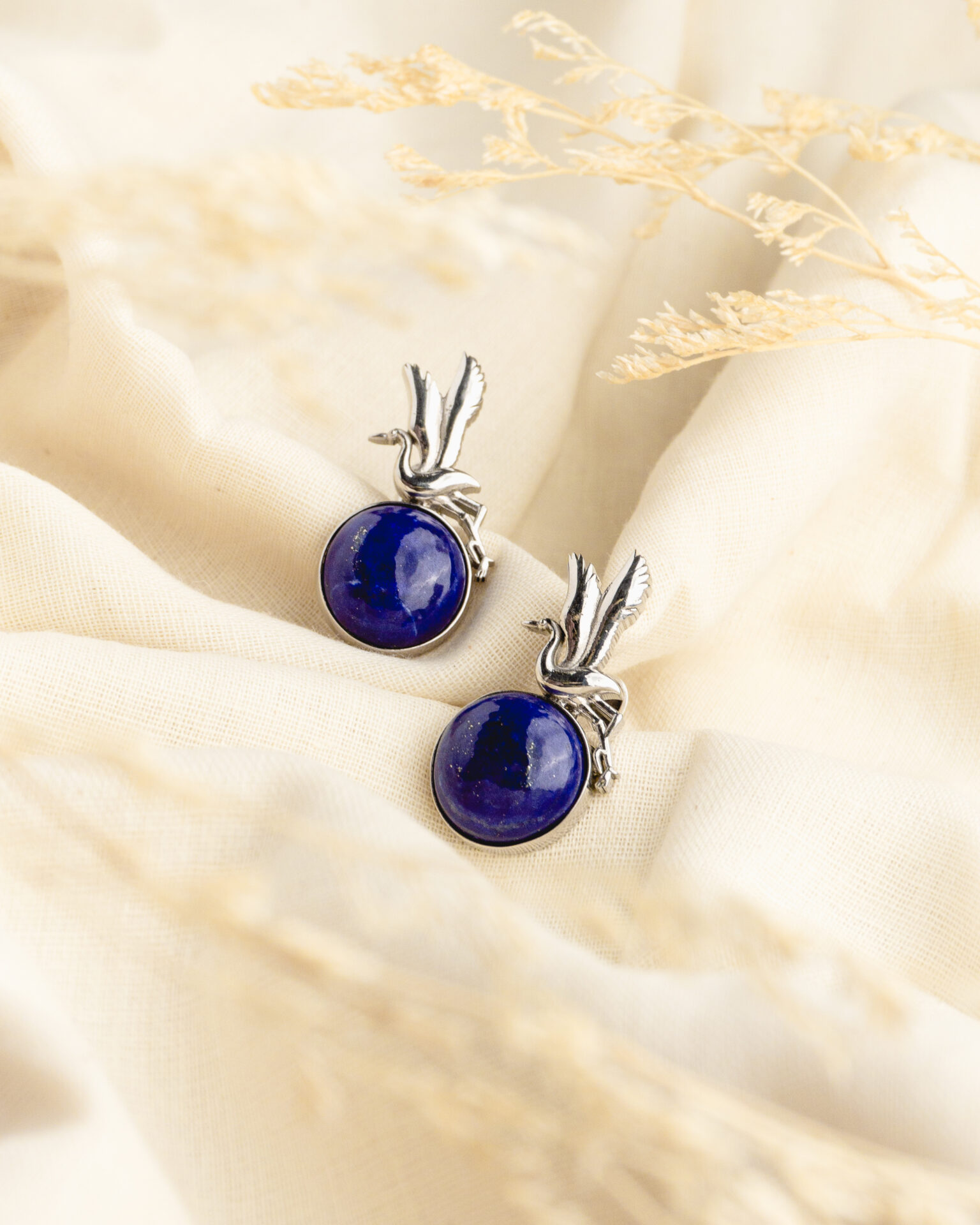 Make an unforgettable impression with the Lapis Crane Statement Cufflinks. These magnificent pieces are a tribute to sophisticated design, blending the symbolic elegance of the Whooping Crane with the deep, majestic beauty of Lapis Lazuli. Perfect for the individual who values unique craftsmanship and meaningful style.