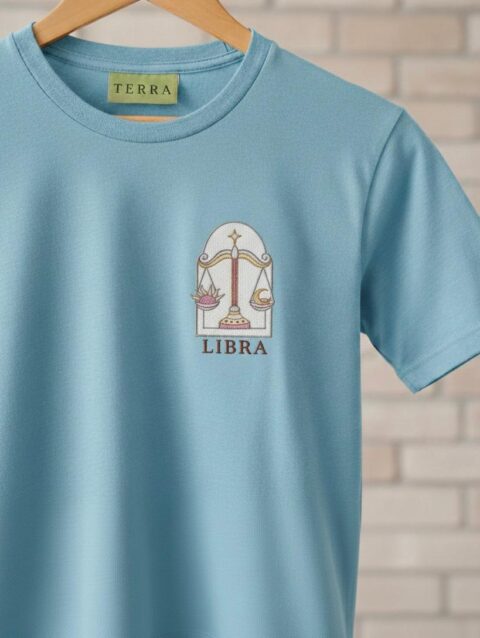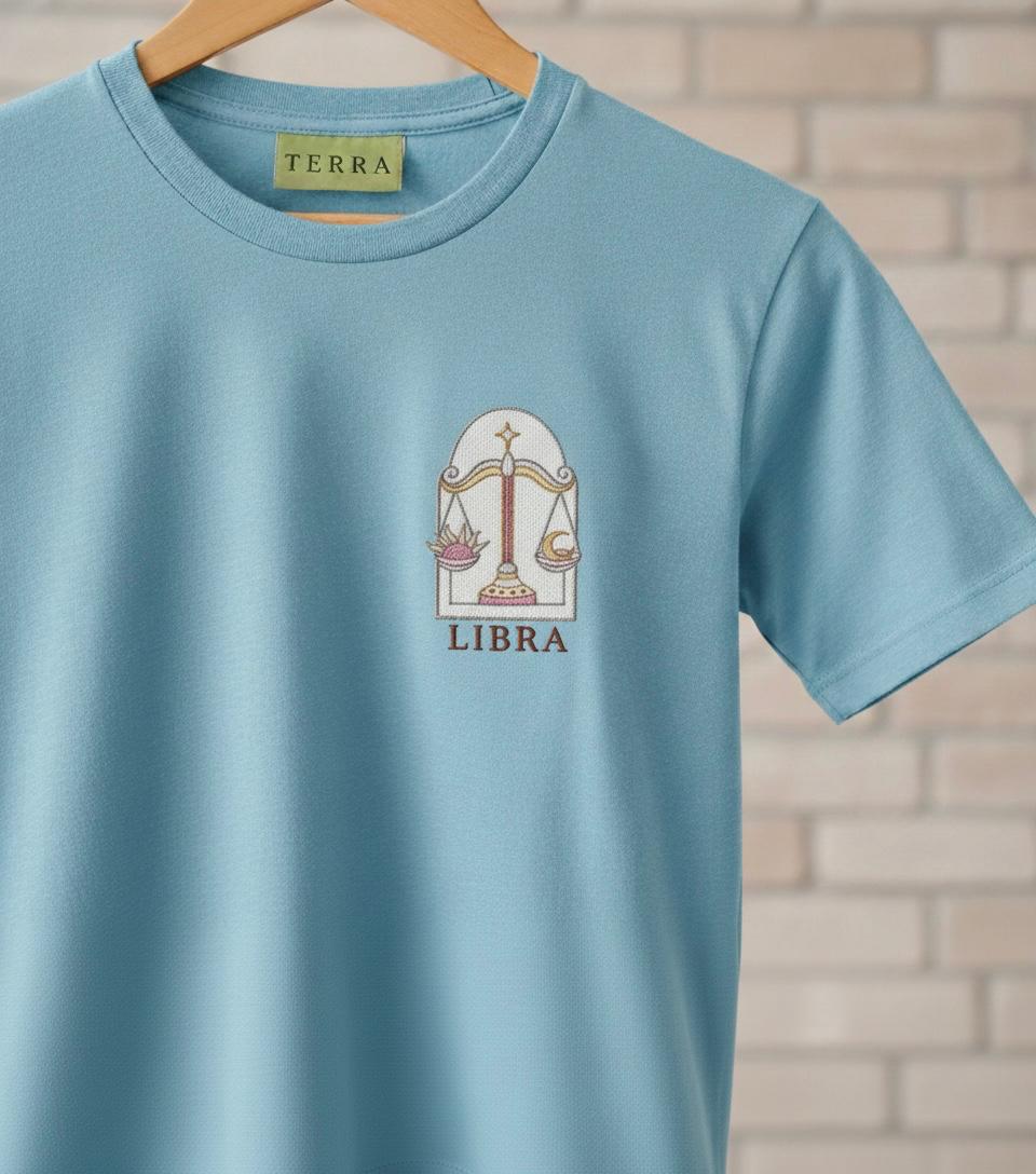 Find your center with the LIBRA zodiac tee from TERRA. Dipped in a serene Ocean Blue, this piece is a masterclass in harmony and aesthetic balance, much like the air sign it celebrates.