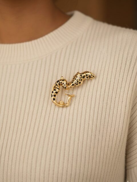 Introducing the T-Force Brooch, an accessory that symbolizes fierce elegance and uncompromising strength. This unique statement piece fuses the clean lines of the initial ‘T’ with the untamed, powerful pattern of the tiger.