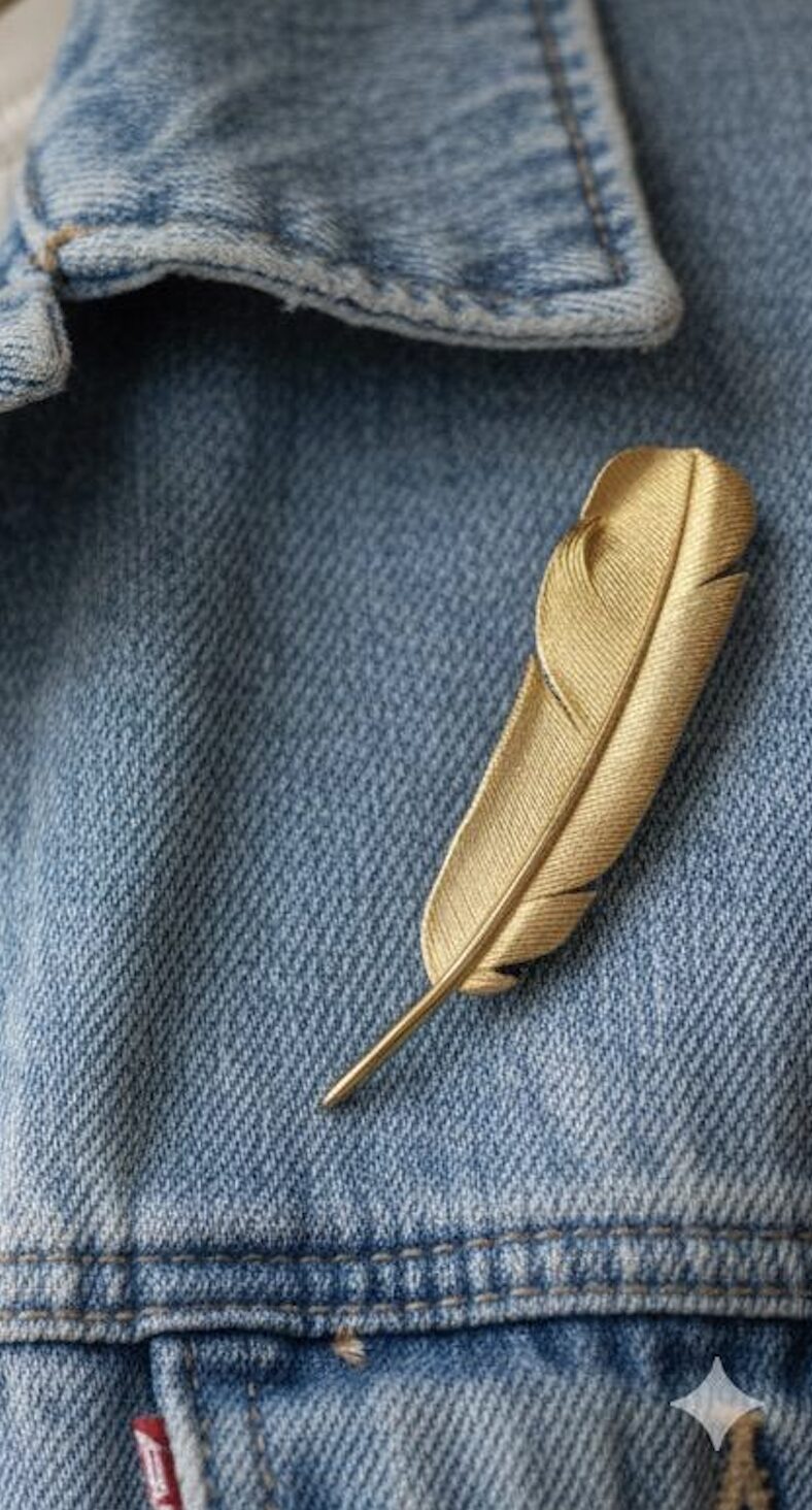Capture the essence of lightness and luxury with The Golden Plume Brooch. This exquisite piece transforms the delicate beauty of a natural feather into a substantial, yet graceful, heirloom accessory. It is a symbol of freedom, truth, and effortless style.