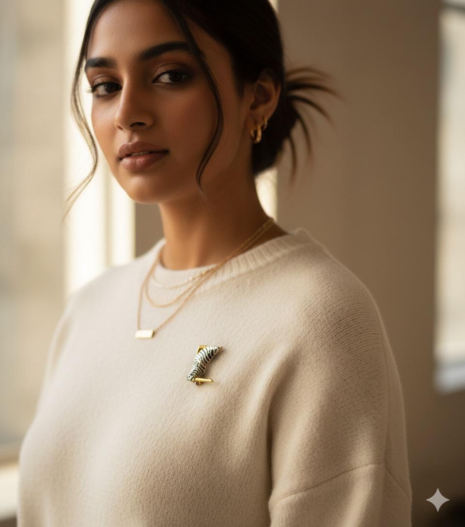 • A Personal Emblem: Whether ‘Z’ is your initial or you simply love the bold drama of this design, the brooch serves as a powerful emblem of energy and unique style.